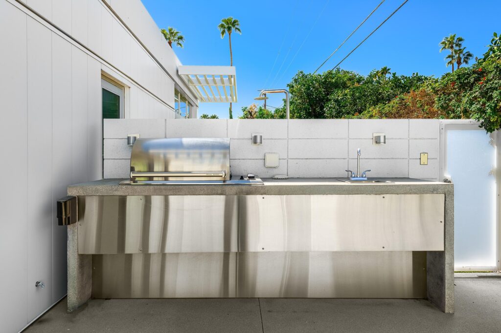 Looking just as innovative and fresh as when it was built a decade ago, this residence by architect Jim Jennings is without parallel in Palm Springs. Of course, there’s a long tradition of Modernism in Palm Springs, with groundbreaking architects like Albert Frey and Richard Neutra seeking new ways to build in the desert in materials like steel, aluminum and concrete. Later, informed by the rush for inexpensive housing directly after WWII and a need to shift industrial capabilities from war materials to consumer needs, architects and developers sought to use industrial techniques to deliver housing. Historically, the best known of these efforts were the Case Study Houses, but the impulse was not limited to the LA area. Like Wexler + Harrison’s innovative early 60s prototype steel houses in Palm Springs, Jenning’s 2013 Deepwell House project was fabricated off-site of a light gauge steel, then quickly assembled on an immaculately crafted but traditional concrete slab.